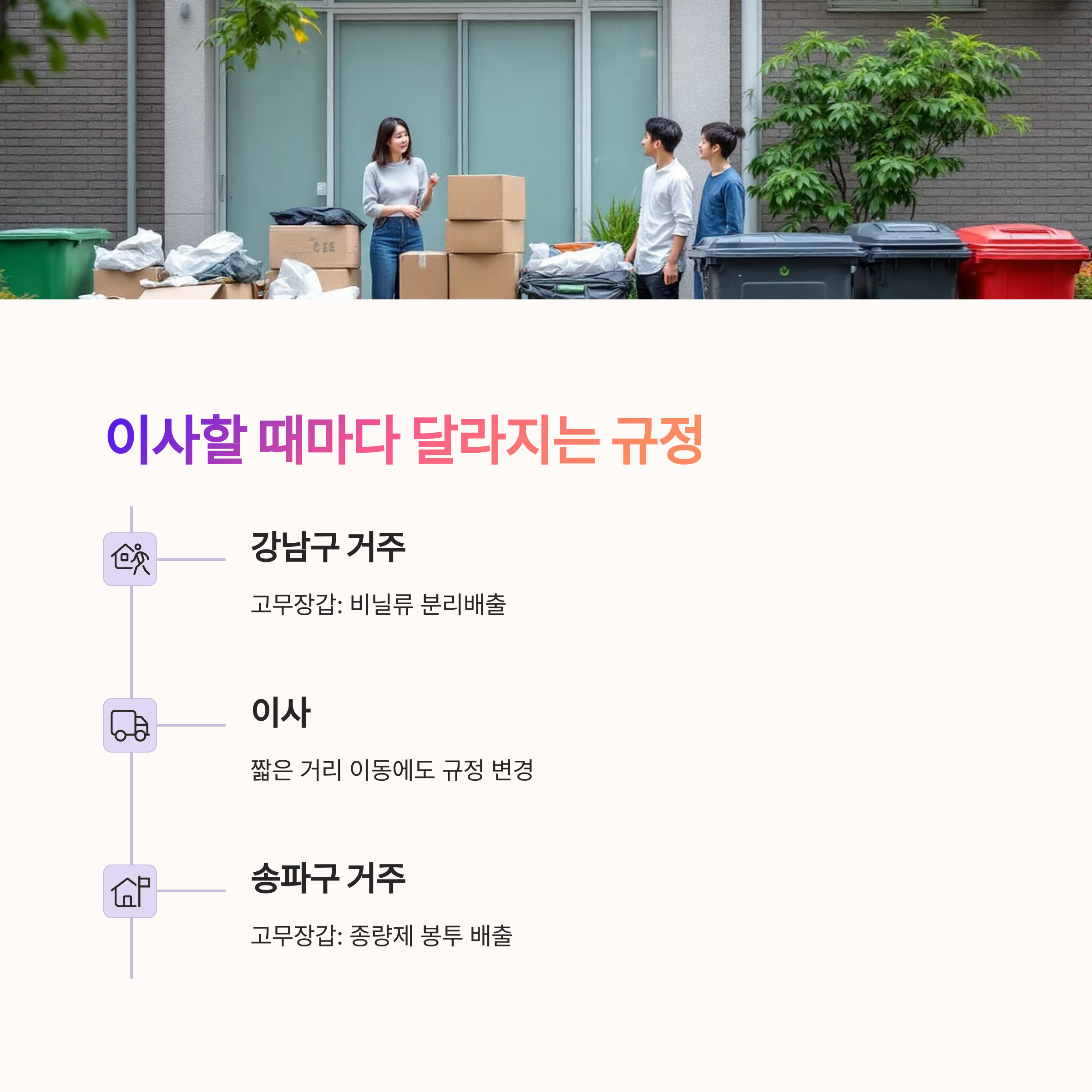 같은 서울이라도 구마다 기준이 다릅니다. ‘○○구청 환경과’ 또는 ‘생활폐기물 안내’ 페이지를 꼭 확인하세요.
