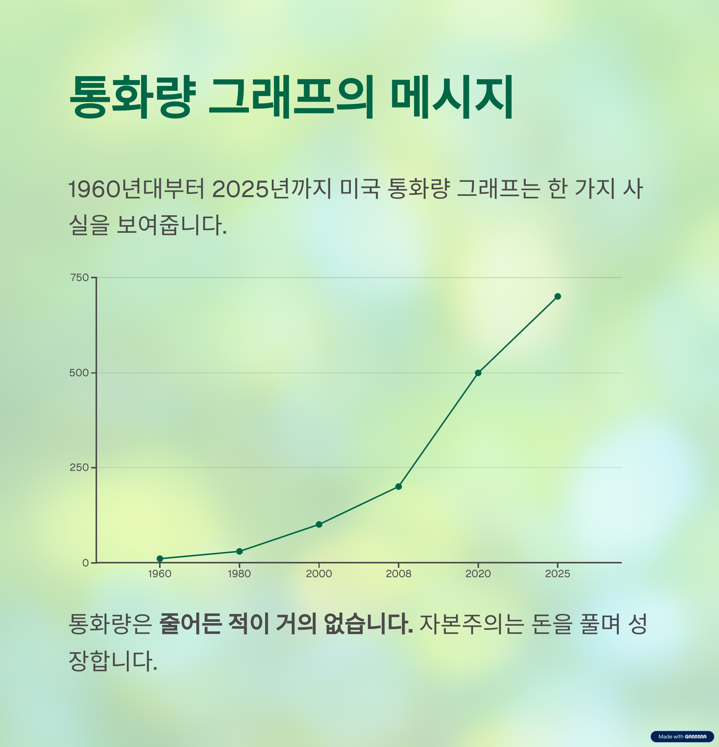 돈은 단순한 숫자가 아니라 흐름입니다. 그 흐름을 보는 눈을 갖춘 사람만이 다음 시대를 준비할 수 있습니다. 그래프는 단순한 통계가 아니라, 자본주의의 방향성을 알려주는 신호입니다. 당신은 이제, 이 흐름 위에 설 준비가 되셨나요?