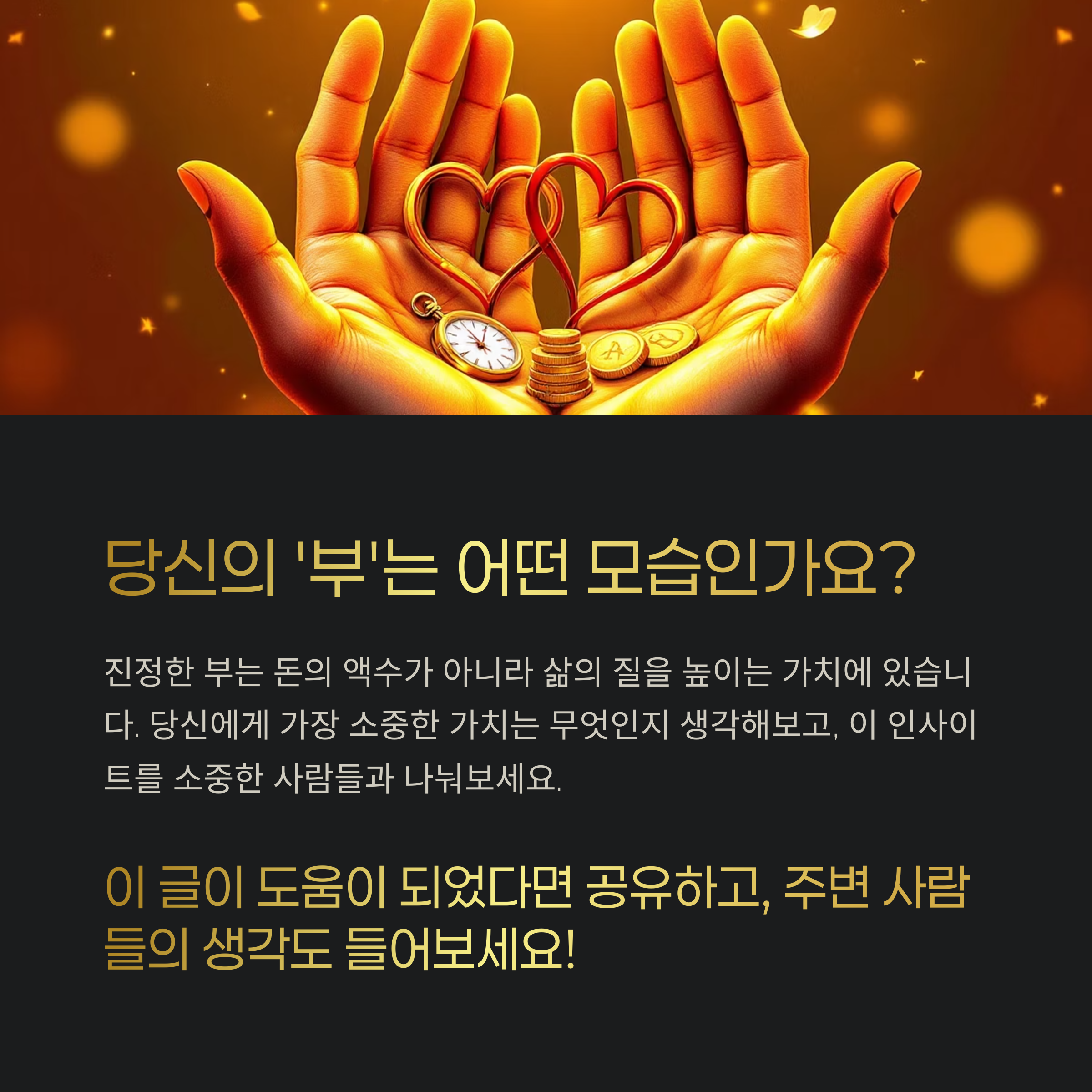 "나는 정말 부자가 되고 싶은 걸까, 아니면 단지 불안하지 않고 싶은 걸까?" 이 질문은 단순한 재테크 고민을 넘어서, 삶의 방향을 되짚게 만드는 힘이 있습니다. 당신의 부자 꿈은 어떤 모습인가요? 댓글로 함께 이야기 나눠보아요.